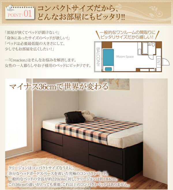 送料無料 組立 サービス付き 日本製 ショート丈 セミシングルベッド 小さい 180cm フレーム マット付き 収納付き セミシングル マットレスセット ヘッドレス 大容量 コンパクト チェストベッド クリージョン 薄型スタンダードポケットコイルマットレス付き 木製 引き出し