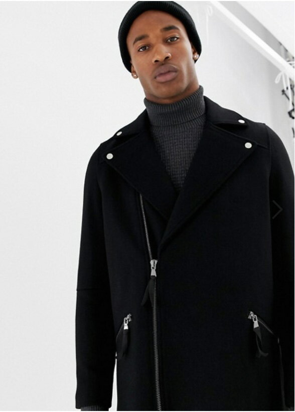 ASOS DESIGNウールミックスバイカーオーバーコートブラック 20代 30代 40代 ファッション コーディネート 大きいサイズあり