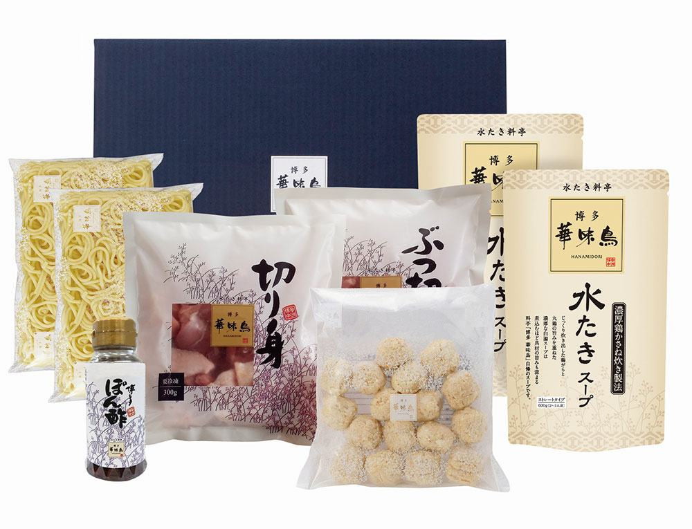 吟味されたスープと素材、こだわりの水たきをご家庭でもお楽しみいただけます。