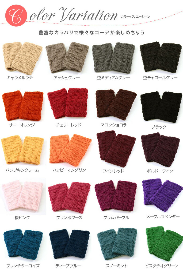 商品名 マカロンウォーマー(同色2枚のセット) 〜レッグウォーマー・アームウォーマー サイズ フリーサイズ カラー キャラメルラテ/アッシュグレー/杢ミディアムグレー/杢チャコールグレー/サニーオレンジ/チェリーレッド/マロンショコラ/ブラック/パンプキンクリーム/ハッピーマンダリン/ワインレッド/ボルドーワイン/桜ピンク/フランボワーズ/プラムパープル/メープルラベンダー/フレンチターコイズ/ディープブルー/スノーミント/ピスタチオグリーン 素材 アクリル、ナイロン、ポリエステル、ウール、ポリウレタン 生産国 日本 注意事項 商品の写真は現物を忠実に再現するように撮影しておりますが、お使いのモニタや環境によって実物と色味が違って見える場合がございます。
