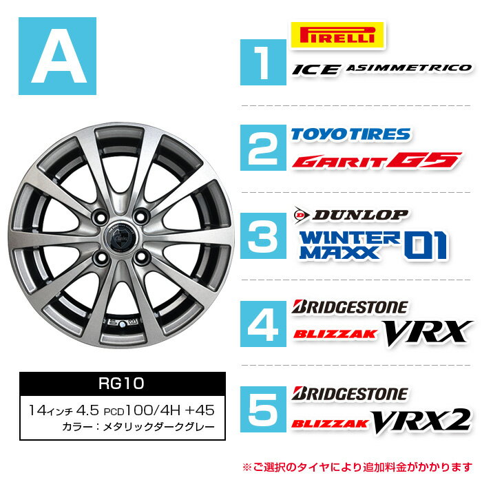 選べる人気ホイール&スタッドレス 厳選ホイール揃い!軽自動車 155/65R14 スタッドレスタイヤ&ホイール4本セット 155/65R14 ※ピレリは2018年製 ※注意※ ご選択商品によって追加料金がかかります!WM01/アシンメトリコ/ガリットG5/VRX/VRX2