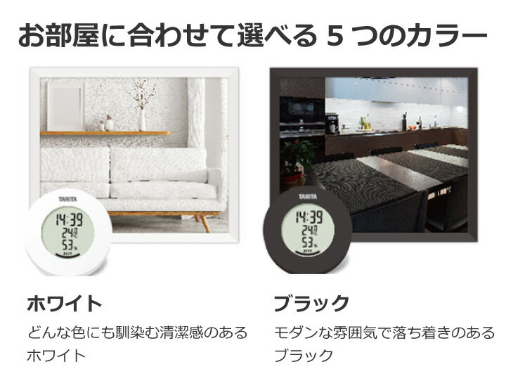 これ以外の範囲の場合は、快適レベル表示なし) アラーム時間 約30秒 最高最低温湿度表示 あり 時計表示 12時間・24時間表示 Point!! ●お部屋に合わせて選べる5つのカラー。