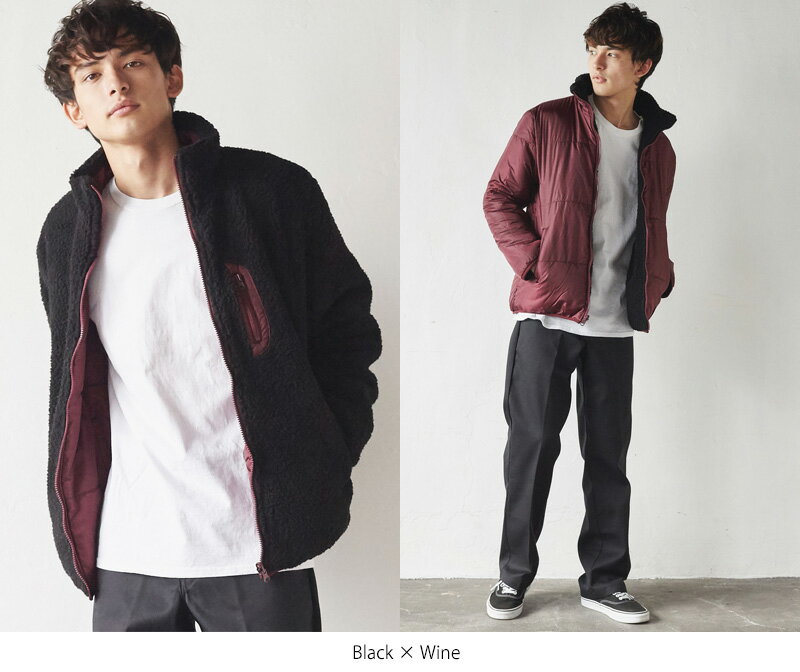 ブルゾン メンズ レディース アウター リバーシブル ボア フリース ジャケット 暖かい もこもこ 2WAY 防寒 カジュアル おしゃれ 無地 8480