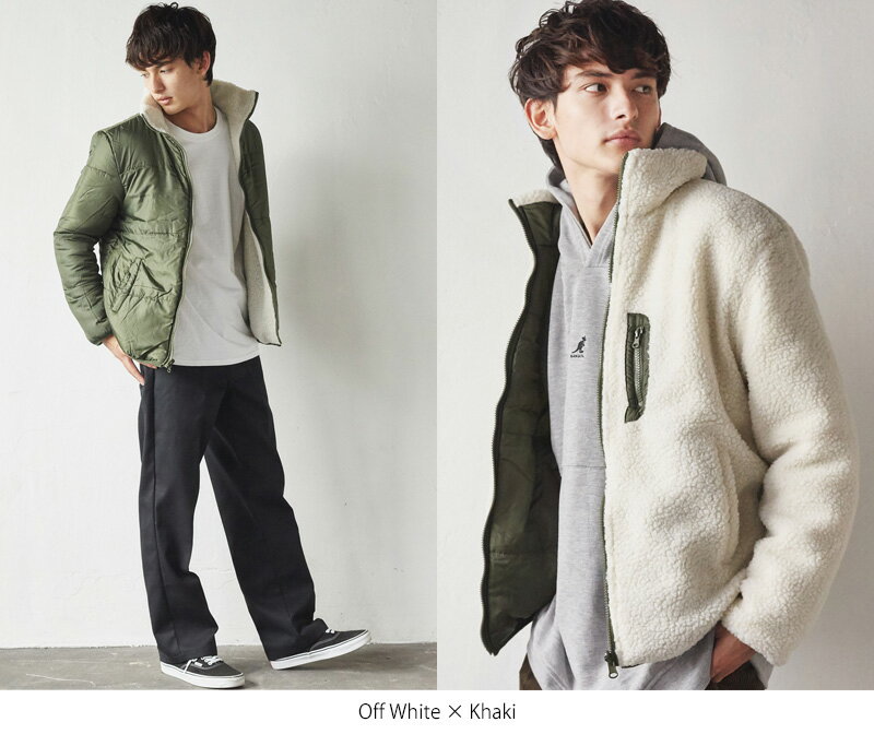 ITEM DISCRIPTION | 商品説明 ■ 着回しが出来る2WAY仕様 程良い光沢の中綿入りの面とモコモコと見た目も着心地も暖かなシープ調のマットなボアの面との2WAY仕様。